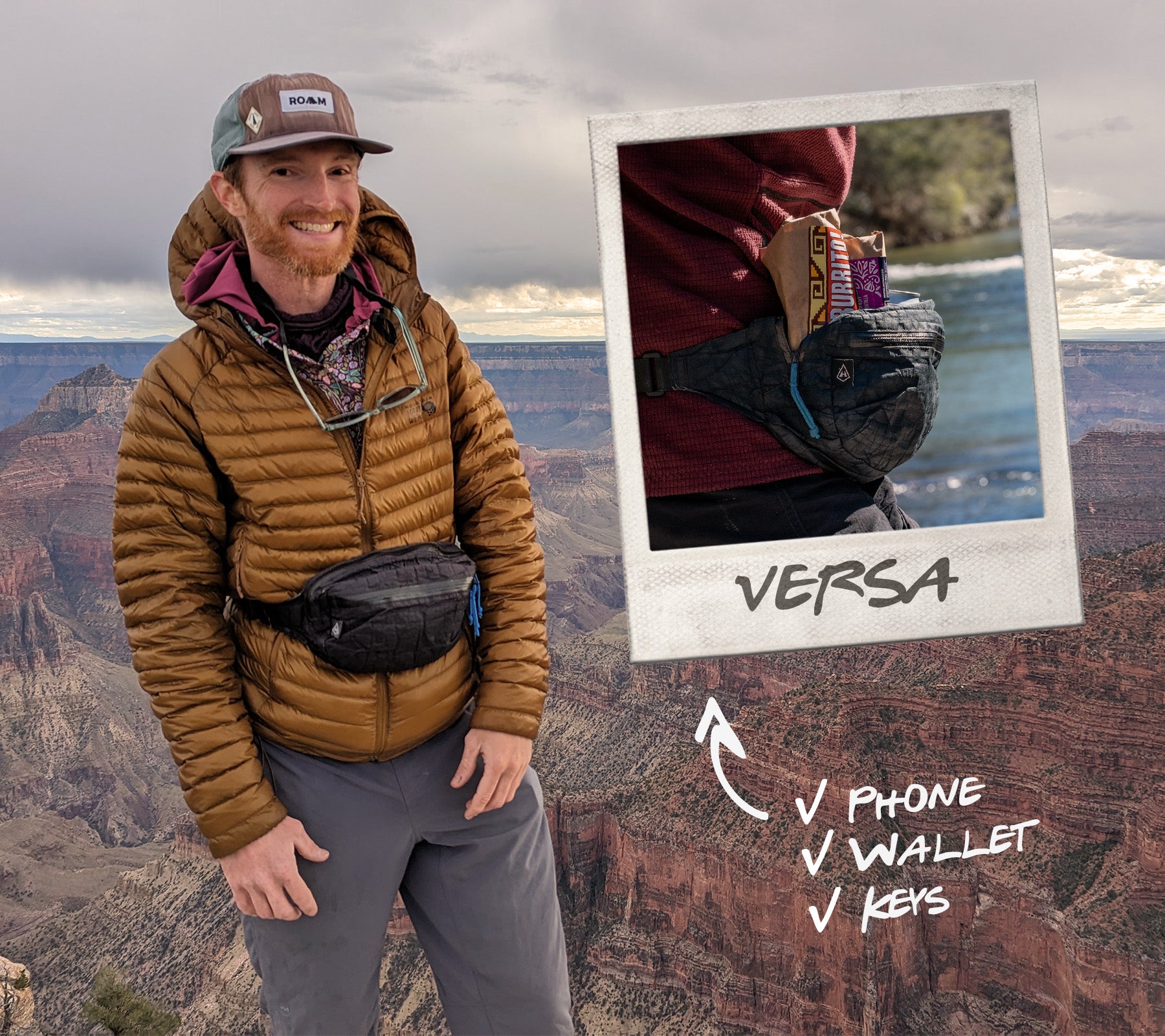 "Got pack separation anxiety? Fear not; all your 'must-haves' (wallet, keys, glasses, ear buds, daily meds, etc.) are secured in your fanny! And that frees up space in your hip belt pockets for snacks."